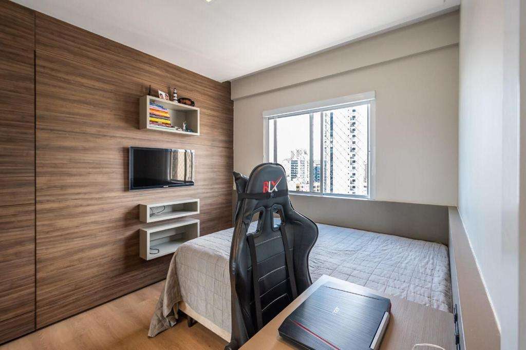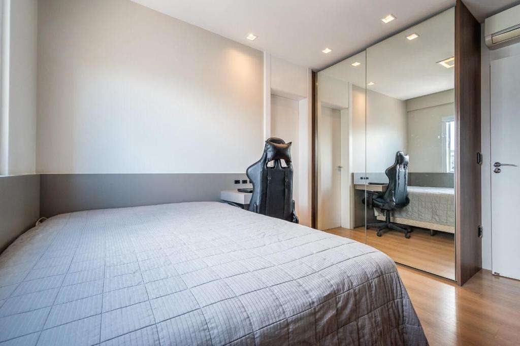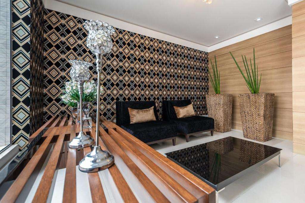 Pavimento inteiro de lazer contendo salão de festas, sala de jogos, academia, piscinas adulto e infantil, playground, bicicletário, hall decorado e guarita com monitoramento