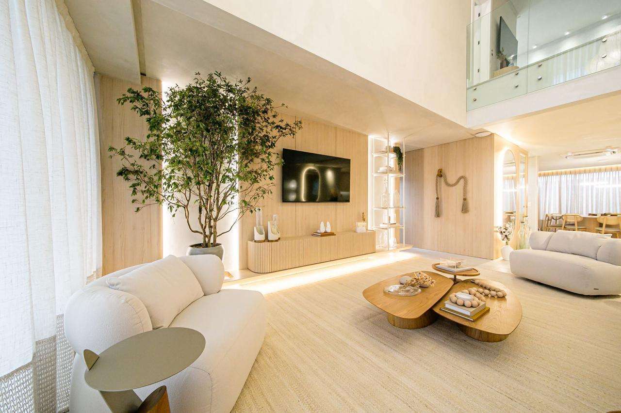 Pé direito duplo no living